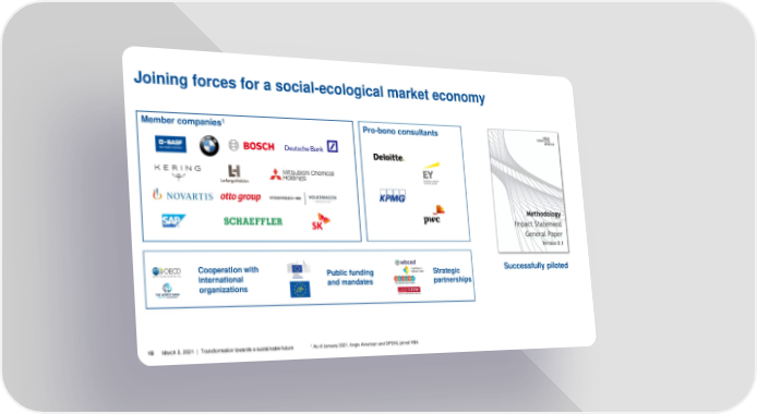 Joining forces for a social-ecological market economy Member companies1 Pro-bono consultants Cooperation with Public funding Strategic Successfully piloted international and mandates partnerships organizations 18 March 2, 2021 | Transformation towards a sustainable future 1 As of January 2021, Anglo American and DPDHL joined VBA