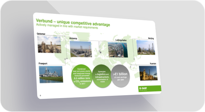 Verbund – unique competitive advantage Actively managed in line with market requirements Geismar Nanjing Antwerp Ludwigshafen Freeport Kuantan . Combined heat and power plants Synergies and integrated energy in logistics and >€1 billion Verbundprevented infrastructure, 6.5 million tons of cost savings of CO emissions minimization of per year 2 waste in 2017 8