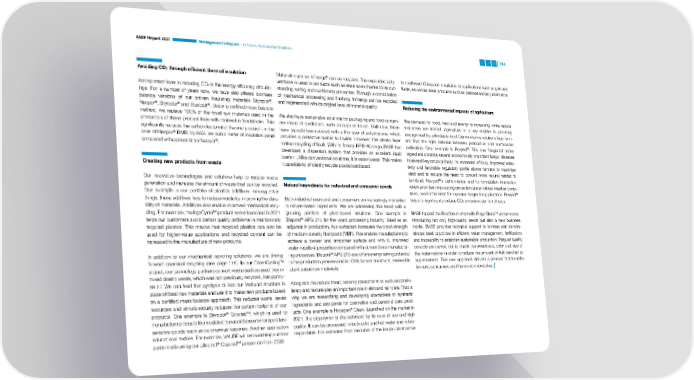 BASF Report 2021 Management’s Report – In Focus: Sustainable Solutions 144 ® Avoiding CO through efficient thermal insulation Materials such as Infinergy can be recycled. The expanded poly- to southwest China and is suitable for applications such as gels and 2 urethane is used in products such as shoe soles thanks to its out- fluids, as well as novel products such as patches and jelly cosmetics. An important lever in reducing CO is the energy efficiency of build- standing spring and cushioning properties. Through a combination 2 ings. For a number of years now, we have also offered biomass of mechanical processing and finishing, Infinergy can be recycled balance versions of our proven insulating materials Styropor®, and regenerated with its original level of material quality. Reducing the environmental impacts of agriculture ® ® ® Neopor , Styrodur and Elastopir . Under a certified mass balance method, we replace 100% of the fossil raw materials used in the We also have sustainable solutions for packaging and food contain- The demand for food, feed and energy is increasing, while natural production of these product lines with renewable feedstocks. This ers made of cardboard, such as cups or boxes. Until now, these resources are limited. Agriculture is a key enabler in providing significantly reduces the carbon footprint of the end product – in the have typically been coated with a thin layer of polyethylene, which enough healthy, affordable food. Our innovative solutions help farm- ® BMB, by 66% per cubic meter of insulation panel case of Neopor provides a protective barrier to liquids. However, this plastic layer ers find the right balance between productive and sustainable ® ® compared with conventional Neopor . makes recycling difficult. With its Joncryl HPB 4K range, BASF has cultivation. One example is Revysol . The new fungicidal active developed a dispersion system that provides an excellent liquid ingredient controls several economically important fungal diseases barrier. Unlike conventional solutions, it is water-based. This makes in several key crops globally. Its enhanced efficacy, improved selec- Creating new products from waste it possible to efficiently recycle coated cardboard. tivity and favorable regulatory profile allows farmers to maximize yield and to reduce the need to convert more natural habitat to Our innovative technologies and solutions help to reduce waste ®’s performance and its formulation innovation, farmland. Revysol generation and increase the amount of waste that can be recycled. Natural ingredients for industrial and consumer goods which provides long-lasting protection under critical weather condi- One example is our portfolio of plastics additives. Among other tions, avoids the need for repeated fungicide applications. Revysol® things, these additives help to reduce waste by improving the dura- Both industrial users and end consumers are increasingly interested helps to significantly reduce CO emissions per ton of crop. 2 bility of materials. Additives also enable improved mechanical recy- in nature-based ingredients. We are addressing this trend with a TM TM cling. For example, the IrgaCycle product series launched in 2021 growing portfolio of plant-based solutions. One example is BASF tapped the Brazilian market with Pingo Doce watermelons, helps our customers avoid certain quality problems in mechanically ® APG 215 for the wood processing industry. Used as an introducing not only high-quality seeds but also a new business Disponil recycled plastics. This means that recycled plastics can also be adjuvant in production, this surfactant increases the bond strength model. BASF provides technical support to farmers and demon- used for higher-value applications and recycled content can be of medium-density fiberboard (MDF). This enables manufacturers to strates best practices in efficient water management, fertilization increased in the manufacture of new products. achieve a denser and smoother surface and with it, improved and traceability to establish sustainable production. Regular quality water-repellent properties compared with conventional manufactur- controls are carried out to check the sweetness, color and size of In addition to our mechanical recycling solutions, we are driving ing processes. Disponil® APG 215 also offers energy saving potential the watermelons in order to reduce the amount of fruit rejected by TM forward chemical recycling (see page 115). In our ChemCycling in the production process and is 100% based on natural, renewable supermarkets. This new approach delivers a product that benefits project, our technology partners convert waste such as used tires or plant-based raw materials. farmers, consumers and the environment alike. mixed plastic waste, which was not previously recycled, into pyroly- sis oil. We can feed this pyrolysis oil into our Verbund structure in Alongside the natural trend, sensory characteristics such as consis- place of fossil raw materials and use it to make new products based tency and texture play an important role in skin and hair care. That is on a certified mass balance approach. This reduces waste, saves why we are researching and developing alternatives to synthetic resources and simultaneously reduces the carbon footprint of our ingredients and excipients for cosmetics and personal care prod- ® TM ® products. One example is Styropor Ccycled , which is used to ucts. One example is Hydagen Clean. Launched on the market in manufacture products like insulated transport boxes for temperature- 2021, the biopolymer is characterized by its ease of use and high sensitive goods such as coronavirus vaccines. Another application quality. It can be processed in both cold and hot water and is bio- is functional textiles. For example, VAUDE will be launching outdoor degradable. It is extracted from the tuber of the konjac plant native ® TM pants made using our Ultramid Ccycled polyamide from 2