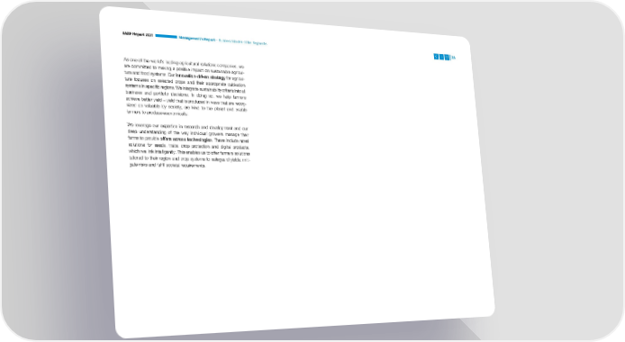 BASF Report 2021 Management’s Report – Business Models of the Segments 35 As one of the world’s leading agricultural solutions companies, we are committed to making a positive impact on sustainable agricul- ture and food systems. Our innovation-driven strategy for agricul- ture focuses on selected crops and their appropriate cultivation systems in specific regions. We integrate sustainability criteria into all business and portfolio decisions. In doing so, we help farmers achieve better yield – yield that is produced in ways that are recog- nized as valuable by society, are kind to the planet and enable farmers to produce economically. We leverage our expertise in research and development and our deep understanding of the way individual growers manage their farms to provide offers across technologies. These include novel solutions for seeds, traits, crop protection and digital products, which we link intelligently. This enables us to offer farmers solutions tailored to their region and crop systems to safeguard yields, miti- gate risks and fulfill societal requirements.