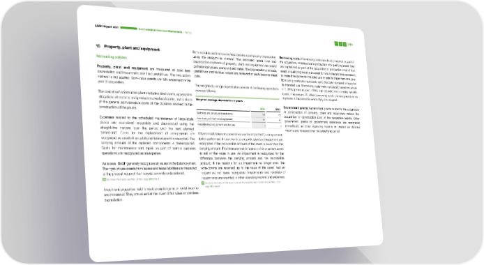 BASF Report 2021 Consoli dated Financial Statements – Notes 240 15 Property, plant and equipment Both movable and immovable fixed assets are principally depreciated Borrowing costs: If borrowing costs are directly incurred as part of using the straight-line method. The estimated useful lives and the acquisition, construction or production of a qualifying asset, they Accounting policies depreciation methods of property, plant and equipment are based are capitalized as part of the acquisition or production cost of that on historical values, plans and estimates. The depreciation methods, asset. A qualifying asset is an asset for which the process necessary Property, plant and equipment are measured at cost less useful lives and residual values are reviewed at each balance sheet to make it ready for its intended use or sale is longer than one year. depreciation and impairment over their useful lives. The revaluation date. Borrowing costs are capitalized up to the date the asset is ready for method is not applied. Low-value assets are fully expensed in the its intended use. Borrowing costs were calculated based on a rate year of acquisition. The weighted average depreciation periods of continuing operations of 1.25% (previous year: 1.5%) and adjusted on a country-specific were as follows: basis, if necessary. All other borrowing costs are recognized as an The cost of self-constructed plants includes direct costs, appropriate expense in the period in which they are incurred. allocations of material and production overhead costs, and a share Weighted average depreciation in years of the general administrative costs of the divisions involved in the 2021 2020 Government grants: Government grants related to the acquisition construction of the plants. or construction of property, plant and equipment reduce the Buildings and structural installations 18 16 acquisition or construction cost of the respective assets. Other Expenses related to the scheduled maintenance of large-scale Machinery and technical equipment 11 10 government grants or government assistance are recognized plants are capitalized separately and depreciated using the Miscellaneous equipment and fixtures 7 6 immediately as other operating income or treated as deferred straight-line method over the period until the next planned income and released over the underlying period. turnaround. Costs for the replacement of components are If there is indication of a possible cause for impairment, an impairment recognized as assets if an additional future benefit is expected. The test is performed. Impairments to property, plant and equipment are carrying amount of the replaced components is derecognized. recognized if the recoverable amount of the asset is lower than the Costs for maintenance and repair as part of normal business carrying amount. The measurement is based on fair value less costs operations are recognized as an expense. to sell or the value in use. An impairment is recognized for the difference between the carrying amount and the recoverable As lessee, BASF generally recognizes all leases in the balance sheet. amount. If the reasons for an impairment no longer exist, the The right-of-use assets from leases and lease liabilities are measur ed write-downs are reversed up to the value of the asset, had an at the present value of the financial commitments entered. impairment not been recognized. Impairments and reversals of For more information, see Note 16 from page 244 onward impairments are reported in other operating income and expenses. For more information on the value in use and the weighted cost of capital rate, see Note 1 from Investment properties held to realize capital gains or rental income page 200 onward are immaterial. They are valued at the lower of fair value or cost less depreciation.
