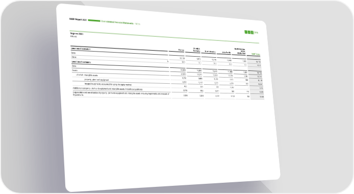BASF Report 2021 Consoli dated Financial Statements – Notes 219 Regions 2020 Million € South America, Of which Africa, Europe Germany North America Asia Pacific Middle East BASF Group Location of customer Sales 23,129 5,510 15,709 15,406 4,905 59,149 Share % 39.1 9.3 26.6 26.0 8.3 100.0 Location of company Sales 24,223 10,296 16,440 14,895 3,591 59,149 Assets 45,551 32,270 17,628 13,725 3,388 80,292 of which intangible assets 6,700 3,588 5,126 1,013 306 13,145 property, plant and equipment 9,550 6,192 5,275 4,220 602 19,647 integral investments accounted for using the equity method 423 391 105 1,350 – 1,878 Additions to property, plant and equipment and intangible assets (including acquisitions) 3,019 932 1,044 690 116 4,869 Depreciation and amortization of property, plant and equipment and intangible assets including impairments and reversals of 3,306 2,305 2,124 1,133 122 6,685 impairments