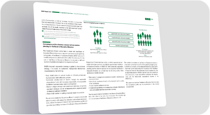 BASF Report 2021 Corporate Governance – Corporate Governance Report 163 parts of enterprises, as well as the issue of bonds or comparable Two-tier management system of BASF SE financial instruments. However, this is only necessary if the acquisi- tion or disposal price or the amount of the issue in an individual case Board of Executive Directors Supervisory Board exceeds 3% of the equity reported in the last approved Consoli- dated Financial Statements of the BASF Group. For more information on risk management, see the Forecast from page 151 onward appoints the Board of Executive Directors The members of the Board of Executive Directors, including their areas of responsibility and memberships on the supervisory bodies of other companies, are listed from page 174 onward monitors the Board of Executive Directors Compensation of the Board of Executive Directors is described in the Compensation Report at basf.com/compensationreport advises the Board of Executive Directors Competence profile, diversity concept and succession reports to Supervisory Board planning for the Board of Executive Directors 6 members 12 members appointed by the Supervisory Board 6 shareholder representatives elected by the The Supervisory Board works hand in hand with the Board of Chair Annual Shareholders’ Meeting and appointed by the Supervisory Board 6 employee representatives Executive Directors to ensure long-term succession planning for the Chair composition of the Board of Executive Directors. BASF aims to fill elected by the Supervisory Board most Board positions with leaders from within the company. It is the task of the Board of Executive Directors to propose a sufficient number of suitable individuals to the Supervisory Board. Irrespective of these individual criteria, a holistic approach will ulti- The number of members on the Board of Executive Directors is mately determine a person’s suitability for appointment to the Board determined by the Supervisory Board. It is guided by insights gained BASF’s long-term succession planning is guided by the corporate of Executive Directors of BASF SE. Both systematic succession by BASF as a company with an integrated leadership culture and is strategy. It is based on systematic management development planning and the selection process aim to ensure that the Board of determined by the needs arising from cooperation within the Board characterized by the following: Executive Directors as a whole has the following profile, which of Executive Directors. The Supervisory Board considers six to be serves as a diversity concept: an appropriate number of Board members given the current busi- – Early identification of suitable leaders of different professional ness composition, future responsibilities associated with develop- backgrounds, nationalities and genders – Many years of management experience in scientific, technical and ment and the fundamental organizational structure of the – Systematic development of leaders through the successful commercial fields BASF Group. assumption of tasks with increasing responsibility, where possible – International experience based on background and/or profes- in different business areas, regions and functions sional experience The current composition of the Board of Executive Directors meets – Desire to shape strategic and operational decisions, and proven – At least one female Board member the competence profile and the requirements of the diversity success in doing so, as well as leadership skills, especially under – A balanced age distribution to ensure the continuity of the Board’s concept in full. challenging business conditions work and enable seamless succession planning – Role model function in putting corporate values into practice The first appointment of members of the Board of Executive Direc- The aim is to enable the Supervisory Board to ensure a reasonable tors is for a term of no more than three years. The standard age level of diversity with respect to education and professional experi- limit for members of the Board of Executive Directors is 63. ence, cultural background, international representation, gender and age when appointing members of the Board of Executive Directors.